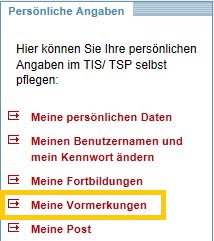 Betätigen Sie in der Box "Persönliche Angaben" den Link MEINE VORMERKUNGEN.