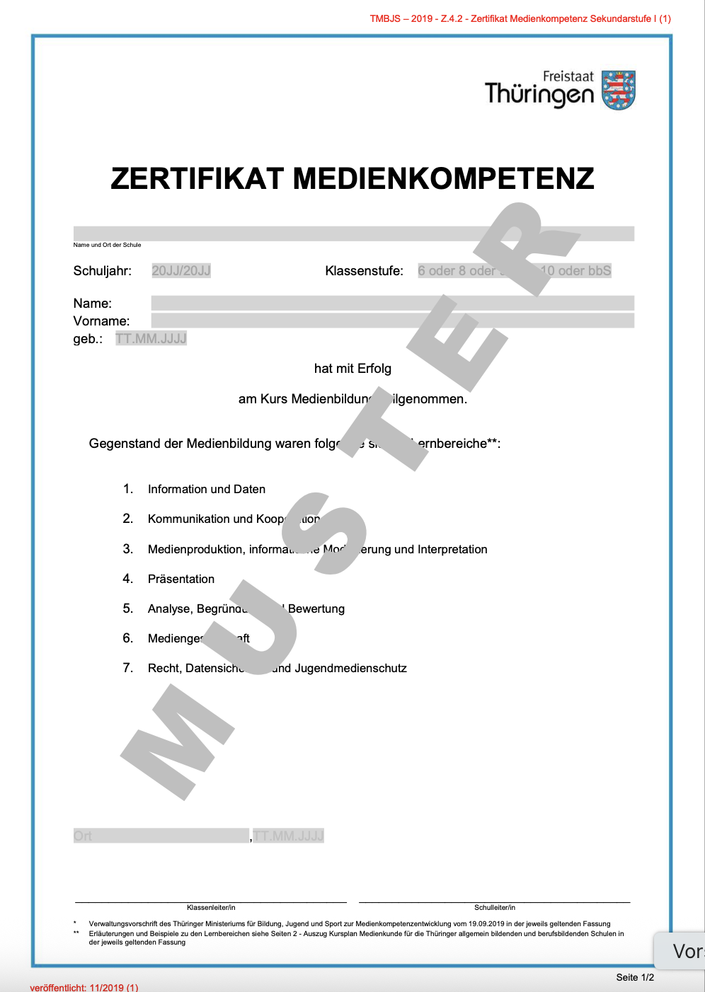 Die Ausstellung eines Zertifkats Medienkompetenz als Anlage zum Zeugnis ist mit der Verwaltungsvorschrift geregelt.