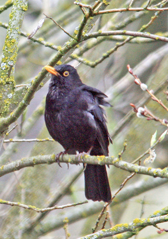 Das Foto hehört zur Serie "Amseln". Es zeigt eine Amsel (Turdus merula), auch Schwarzdrossel genannt, eine Vogelart der Familie der Drosseln. Die Männchen sind schwarz gefärbt und haben einen gelben Schnabel, das Gefieder der Weibchen ist größtenteils dunkelbraun. Es gelten die Nutzungsbedingungen der Mediothek und Pixiothek.