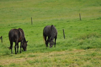 Schwarze Pferde auf der Weide