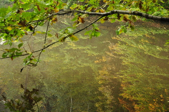 Das Bild zeigt Bäume am Ufer und deren Spiegelung im Teich. Das Bild ist unter CC0 lizenziert und kann somit frei verwendet werden.