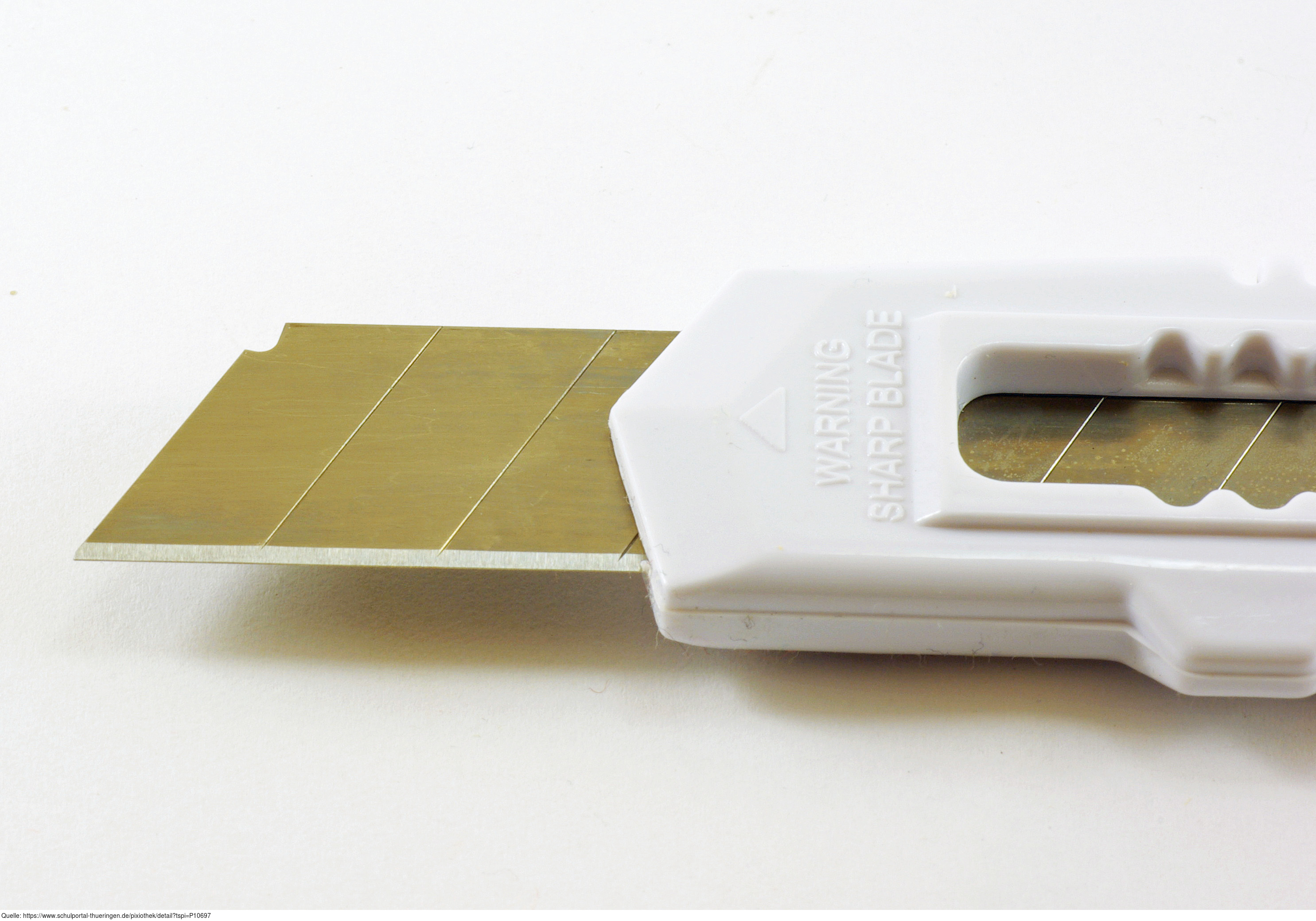 Das Bild gehört zur Serie "Werkzeuge". Es zeigt ein Cuttermesser, auch Cutter oder Stanley-Messer genannt. Das abgebildete Cuttermesser besitzt eine Abbrechklinge (Segmentklinge). Das Bild ist unter CC0 lizenziert und kann somit frei verwendet werden.