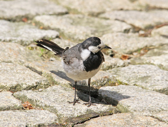 Das Foto gehört zur Serie "Stelzen und Pieper". Es zeigt eine Bachstelze (Motacilla alba). Sie fällt durch ihr kontrastreiches, schwarz-weiß-graues Gefieder und den stelzentypischen Wippschwanz auf. Es gelten die Nutzungsbedingungen der Mediothek und Pixiothek.