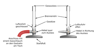 Bunsenbrenner mit Hebel, beschriftet