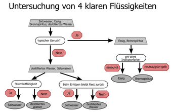Das Bild gehört zur Serie "Chemie Grafiken". Es zeigt ein Flussdiagramm zur Analyse von vier klaren Flüssigkeiten. Die Grafik kann zur Gestaltung von Arbeitsblättern verwendet werden. Das Bild ist unter CC0 lizenziert und kann somit frei verwendet werden.