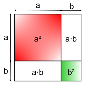 Das Bild gehört zur Serie "Mathematik Algebra". Es zeigt eine geometrische Veranschaulichung der ersten Binomischen Formel.