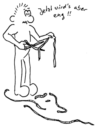 Paul schneidet Bindfaden
