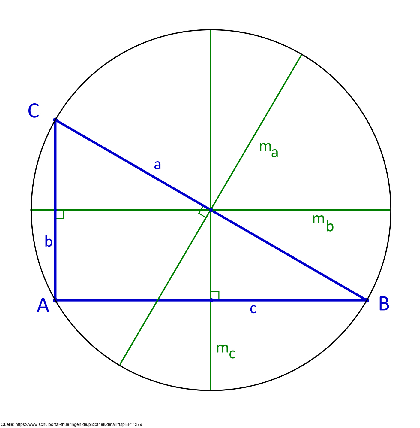 Das Bild gehört zur Serie "Mathematik Geometrie". Es zeigt die drei Mittelsenkrechten in einem rechtwinkligen Dreieck. Die Mittelsenkrechten schneiden sich in einem Punkt. Das ist der Mittelpunkt vom Umkreis des Dreiecks. Das Bild ist unter CC0 lizenziert und kann somit frei verwendet werden.