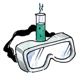 Das Bild zeigt ein gezeichnetes Symbol für Sicherheit im Chemieunterricht. Es gelten die Nutzungsbedingungen der Mediothek und Pixiothek.