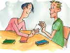 Das Bild gehört zur Serie "Lernformen". Es zeigt ein gezeichnetes Symbolbild für die Lernform Gruppenarbeit. Es gelten die Nutzungsbedingungen der Mediothek und Pixiothek.