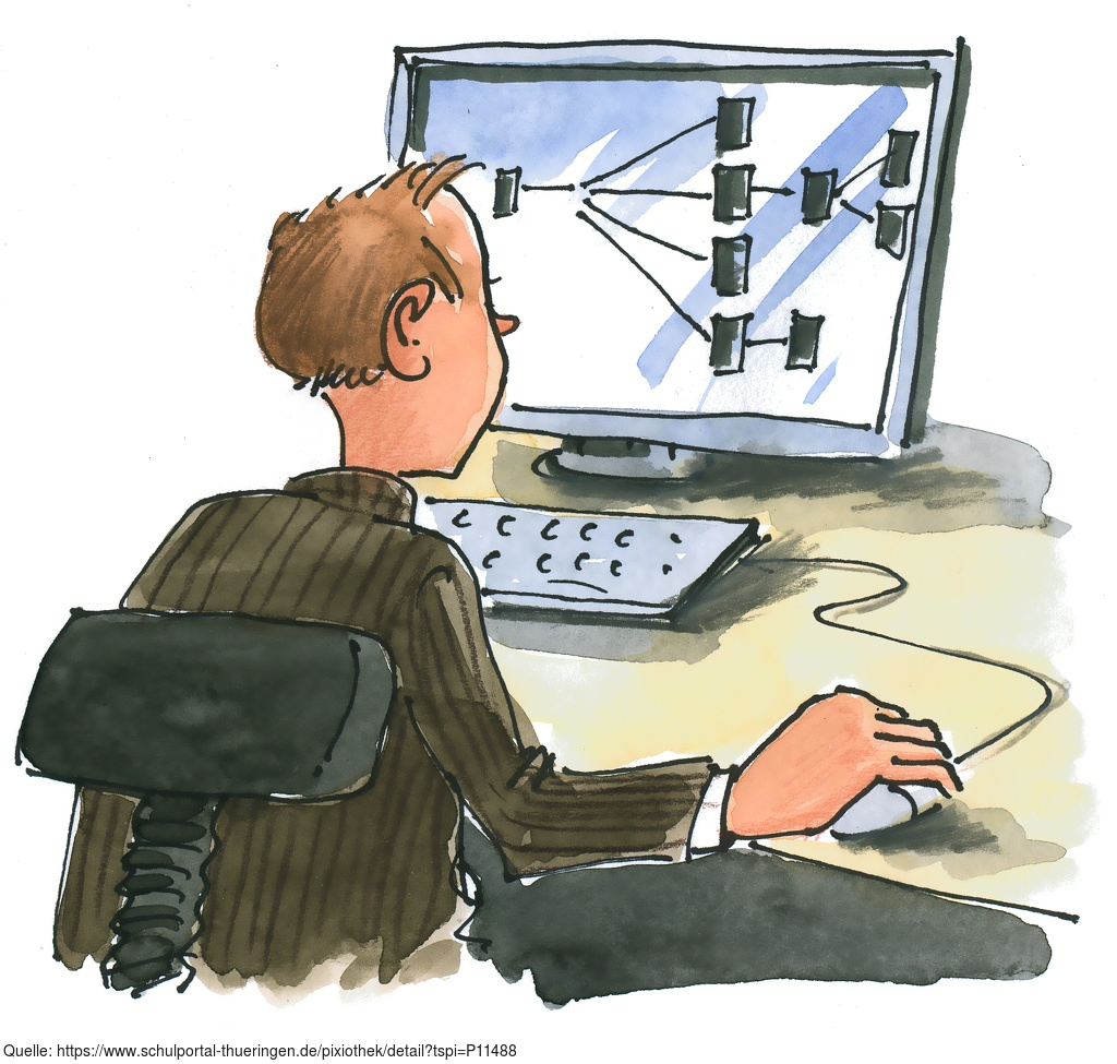 Das Bild gehört zur Serie "Medien". Es zeigt ein gezeichnetes Bild für IT-Berufe. Es gelten die Nutzungsbedingungen der Mediothek und Pixiothek.