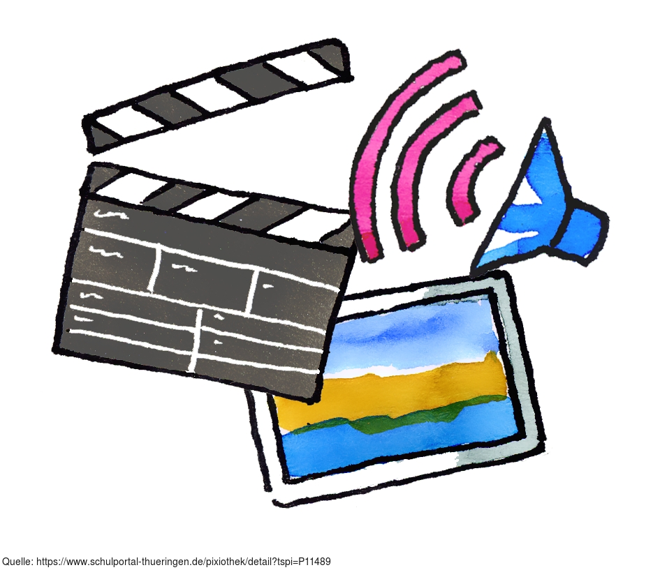 Das Bild gehört zur Serie "Medien". Es zeigt ein gezeichnetes Bild für Multimedia. Es gelten die Nutzungsbedingungen der Mediothek und Pixiothek.