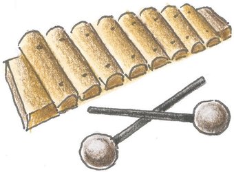 Das Bild gehört zur Serie "Musikinstrumente". Es zeigt ein gezeichnetes Xylophon. Es gelten die Nutzungsbedingungen der Mediothek und Pixiothek.