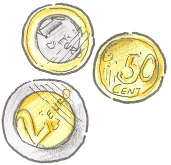 Das Bild gehört zur Serie "Zahlungsmittel". Es zeigt gezeichnete Euro-Münzen. Es gelten die Nutzungsbedingungen der Mediothek und Pixiothek.