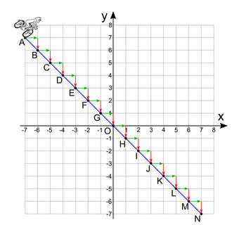 Das Bild gehört zur Serie "Mathematik, lineare Funktionen". Es zeigt Punkte auf einer Geraden im Koordinatensystem und Anstiegsdreiecke. Der Anstieg m der zur Geraden gehörenden linearen Funktion lässt sich damit ermitteln und der Begriff "monoton fallend" erläutern. Das Bild ist unter CC0 lizenziert und kann somit frei verwendet werden.