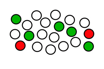Das Bild gehört zur Serie "Mathematik, Bruchteile". Es zeigt die grafische Darstellung von Bruchteilen durch eine Menge von Kreisen (Punkten). Das Bild ist unter CC0 lizenziert und kann somit frei verwendet werden.