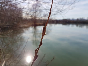Das Foto zeigt Knospen am Uferbewuchs an einem See. Es gelten die Nutzungsbedingungen der Mediothek und Pixiothek.