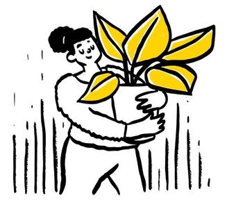 Die Zeichnung "plant" aus der Serie "Open Doodles" zeigt eine Frau, die einen Blumentopf mit Pflanze trägt. Das Bild ist unter CC0 lizenziert und kann somit frei verwendet werden.