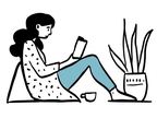 Die Zeichnung "laying-down" aus der Serie "Open Doodles" zeigt eine Frau auf dem Bauch liegend ihr Handy benutzen. Das Bild ist unter CC0 lizenziert und kann somit frei verwendet werden.