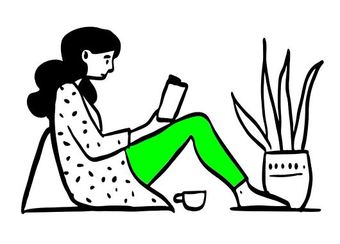 Die Zeichnung "reading-side" aus der Serie "Open Doodles" zeigt eine auf dem Boden sitzende Frau, die in einem Buch liest. Das Bild ist unter CC0 lizenziert und kann somit frei verwendet werden.