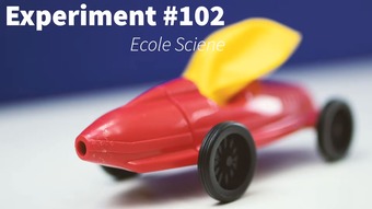 Das Video zeigt ein mit Rückstoß durch die aus dem Luftballon ausströmende Luft angetriebenes Raketenauto. Das Video ist unter CC0 lizenziert und kann somit frei verwendet werden.