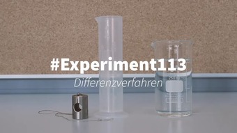 Das Video zeigt ein Experiment zur Volumenbestimmung mit dem Differenzverfahren. Das Video ist unter CC0 lizenziert und kann somit frei verwendet werden.
