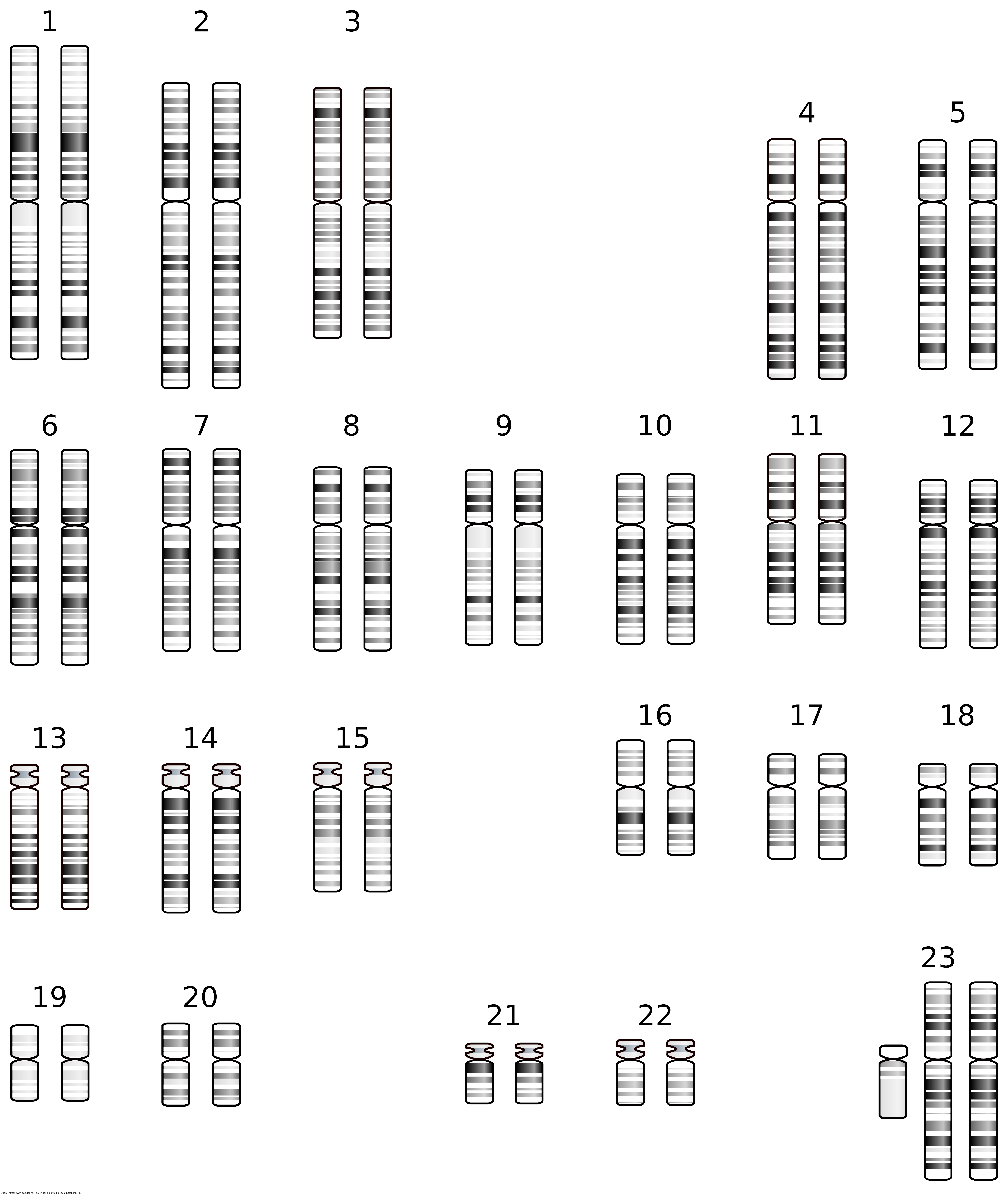 Karyogramm eines Mannes mit Klinefelter-Syndrom / XXY-Syndrom. Es gelten die Nutzungsbedingungen der Mediothek und Pixiothek. Auf http://unterricht.petzinger.net/biochdropbox.html auch als svg und in CC-BY verfügbar.