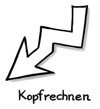 Symbolbild: Kopfrechnen oder Pfeil nach unten