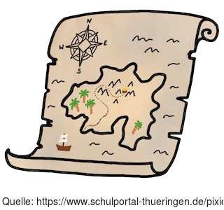 Das Bild gehört zur Serie "Grundschulwortbilder". Es zeigt einen Schatzkarte als Symbolbild für den Buchstaben S. Das Bild ist unter CC0 lizenziert und kann somit frei verwendet werden. Es ist neben weiteren Bildern auch hier zu finden: https://moodlelab.moodleschule.de/