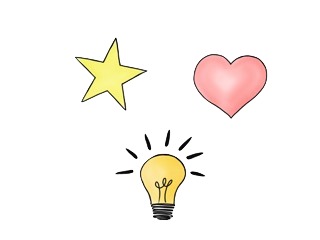 Das Bild zeigt Symbolbilder für Stern, Herz, Glühlampe. Das Bild ist unter CC0 lizenziert und kann somit frei verwendet werden. Es ist neben weiteren Bildern auch hier zu finden: https://moodlelab.moodleschule.de/