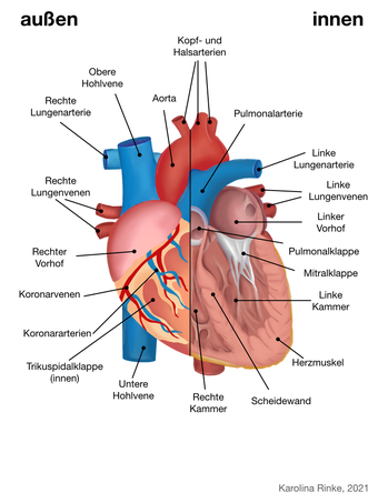 Das Bild gehört zur Serie "Organe des Menschen". Das Bild verdeutlicht den Aufbau des menschlichen Herzens. Bild-Variante: Herz; farbig; beschriftet. Es gelten die Nutzungsbedingungen der Mediothek und Pixiothek.
