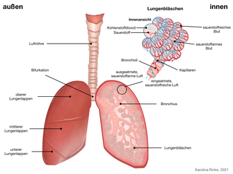 Das Bild gehört zur Serie "Organe des Menschen". Das Bild verdeutlicht den Aufbau der menschlichen Lunge. Bild-Variante: Lunge; farbig; beschriftet. Es gelten die Nutzungsbedingungen der Mediothek und Pixiothek.