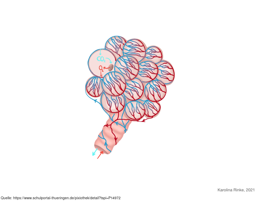 Das Bild gehört zur Serie "Organe des Menschen". Das Bild verdeutlicht den Aufbau der menschlichen Lunge. Bild-Variante: Lungenbläschen; farbig. Es gelten die Nutzungsbedingungen der Mediothek und Pixiothek.