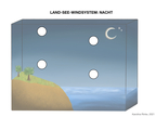 Das Bild gehört zur Serie „Zirkulationssysteme der Erde“. Es verdeutlicht das Land-See-Windsystem der Erde. Bild-Variante: farbig; beschriftet; Nacht. Es gelten die Nutzungsbedingungen der Mediothek und Pixiothek.