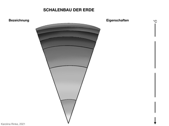 Das Bild verdeutlicht den Schalenaufbau der Erde. Bild-Variante: s/w; unbeschriftet, Variante 2. Es gelten die Nutzungsbedingungen der Mediothek und Pixiothek.