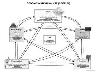 Das Bild zeigt das Beispiel einer Geoökosystemanalyse. Bild-Variante: s/w; teilbeschriftet. Es gelten die Nutzungsbedingungen der Mediothek und Pixiothek.