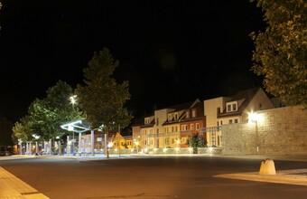 Motiv eines Stadtrundganges durch Pößneck (Ostthüringen) bei Nacht. Abgebildet ist der Busbahnhof. Es gelten die Nutzungsbedingungen der Mediothek und Pixiothek.