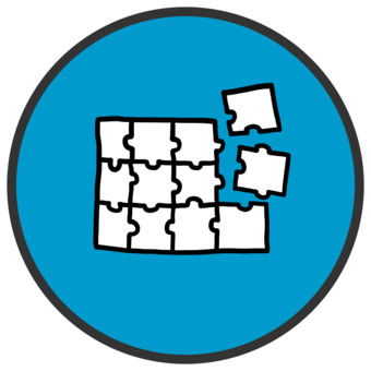 Das Bild gehört zur Serie "Icons 4" und ist ein mögliches Symbolbild für Puzzleteile, inkomplett, unfertig, Elemente, Bestandteile, miteinander, gemeinsam, Modul, Raetsel. Das Bild ist unter CC0 lizenziert und kann somit frei verwendet werden. Es ist neben weiteren Bildern auch hier zu finden: https://bildungselemente.de/de/projekte/icons-symbole-bilddateien