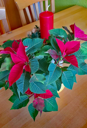 Das Foto gehört zur Serie "Weihnacht". Es zeigt einen Weihnachtsstern (wissenschaftlicher Name: Euphorbia pulcherrima) aus der Familie der Wolfsmilchgewächse (Euphorbiaceae). Es gelten die Nutzungsbedingungen der Mediothek und Pixiothek.