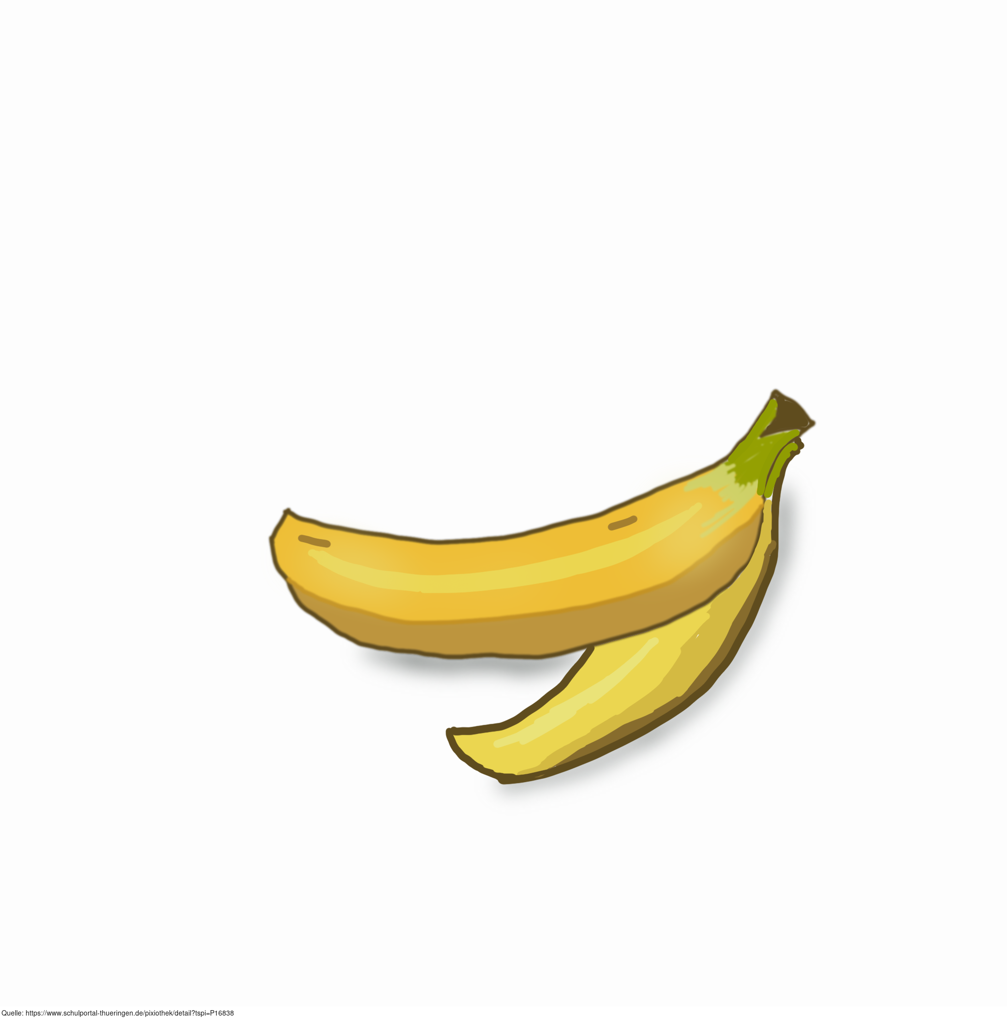 Das Bild zeigt eine gezeichnete Banane. Das Bild ist unter CC0 lizenziert und kann somit frei verwendet werden.