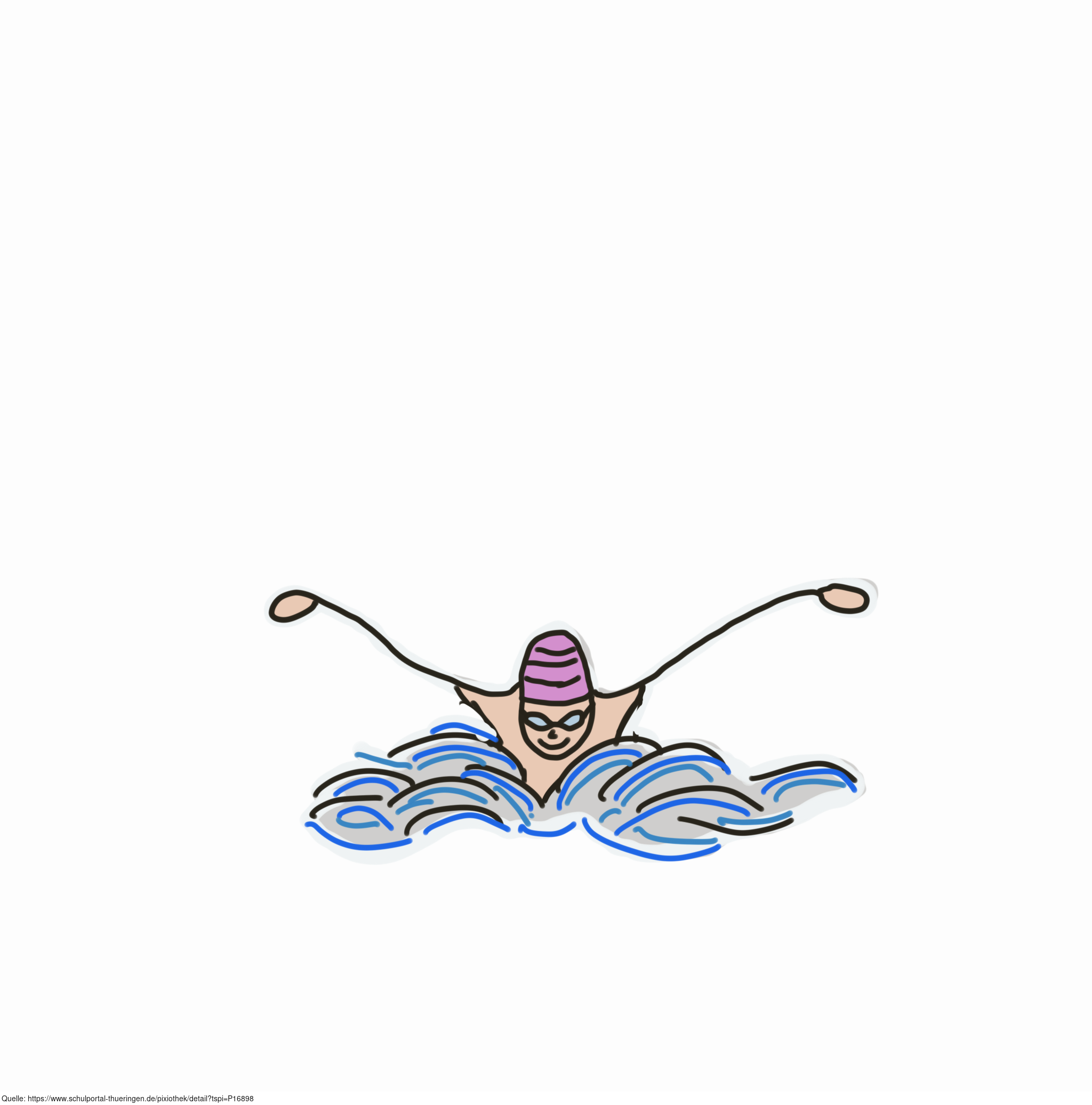 Das Bild zeigt eine gezeichnete Person beim Schwimmen. Das Bild ist unter CC0 lizenziert und kann somit frei verwendet werden.