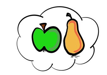 Das Bild zeigt eine Gedankenblasemit Äpfeln und Birnen als mögliches Symbolbild für gedankliche Unordnung oder das sprichwörtliche Vergleichen von Äpfeln mit Birnen. Es wurde erstellt von Peter Bernardi für SeLL, HHU Düsseldorf. Es gelten die Nutzungsbedingungen der Mediothek und Pixiothek.