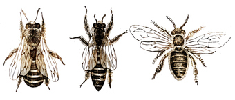Drohne, Bienenkönigin, Arbeiterbiene (ohne Beschriftung, choloriert)