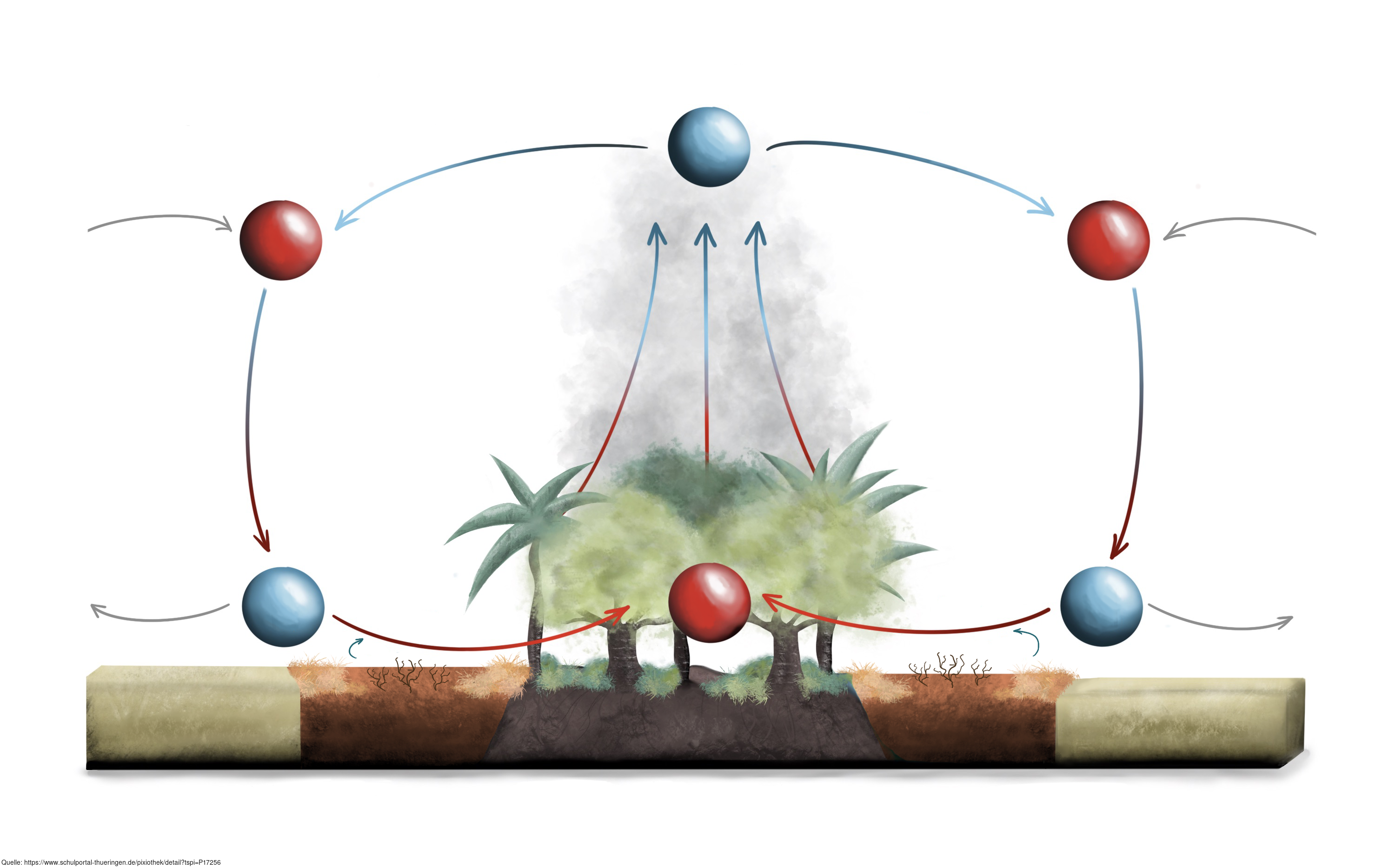 Das Bild gehört zur Serie „Windsysteme“. Es verdeutlicht aus der Querschnittsperspektive die Windzirkulation vom Äquator bis zu den Wendekreisen. Variante: s/w; ubeschriftet. Es gelten die Nutzungsbedingungen der Mediothek und Pixiothek.