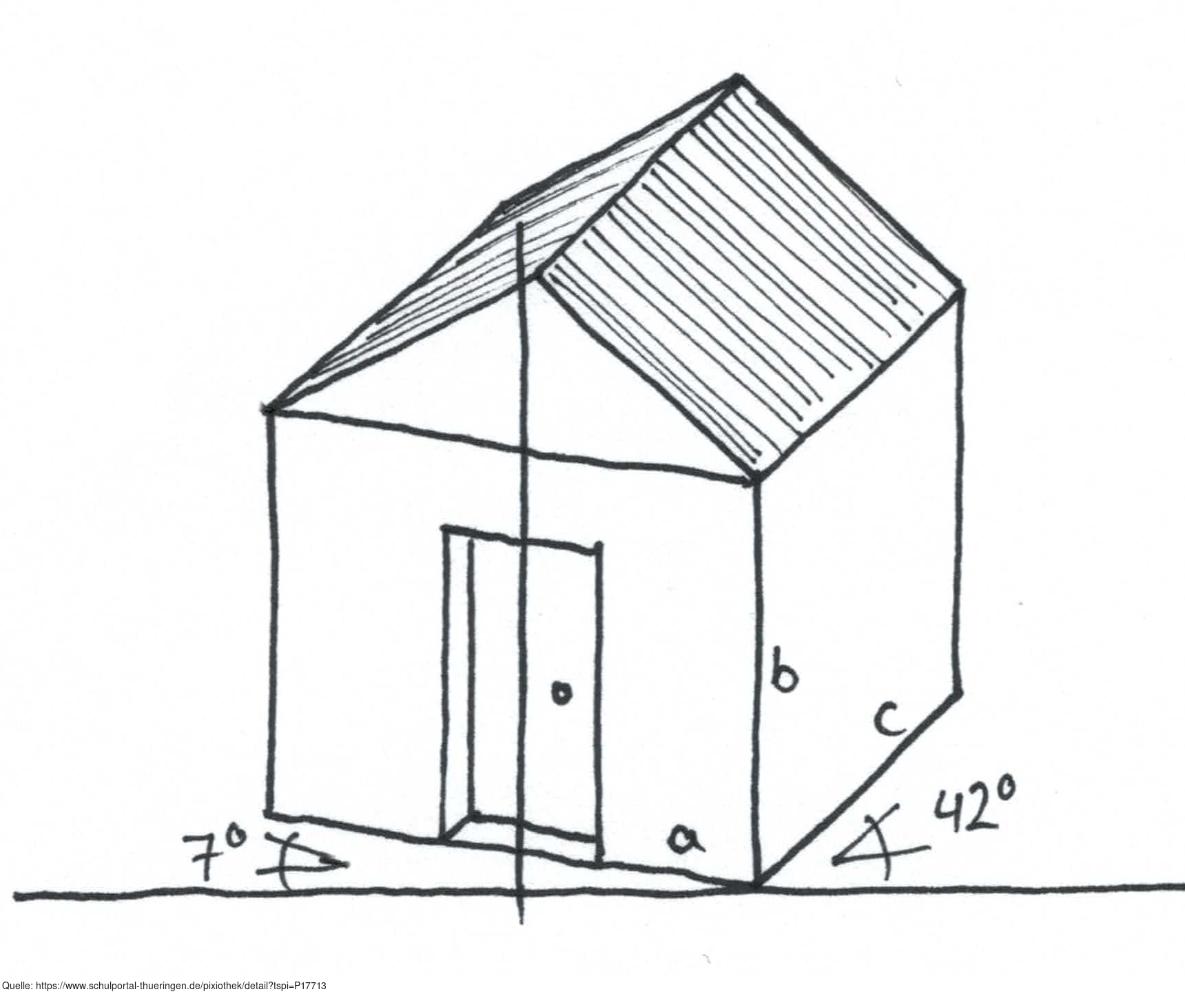 Das Bild gehört zur Serie "Projektionsarten". Es zeigt die dimetrische Projektion am Beispiel eines Gebäudes. Es gelten die Nutzungsbedingungen der Mediothek und Pixiothek.