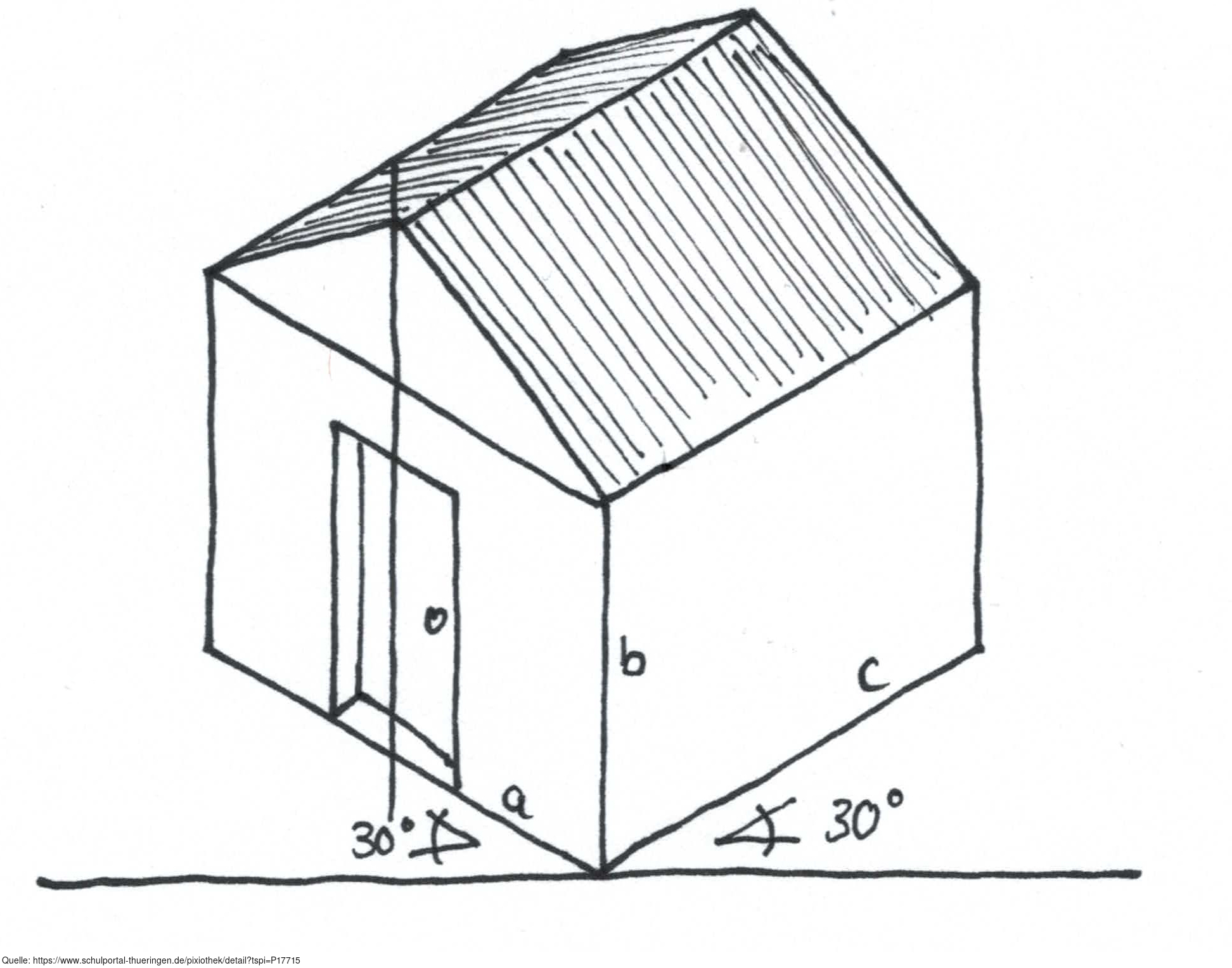 Das Bild gehört zur Serie "Projektionsarten". Es zeigt die isometrische Projektion am Beispiel eines Gebäudes. Es gelten die Nutzungsbedingungen der Mediothek und Pixiothek.