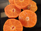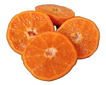Das Bild gehört zur Serie "Obst". Zu sehen sind aufgeschnittene Mandarinen. Es gelten die Nutzungsbedingungen der Mediothek und Pixiothek.