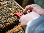 Das Bild gehört zur Serie "Saalfelder Honig", aufgenommen vom Imker Bernd Rümpler, Inhaber von saalfelder-honig.de. Zu sehen ist eine Honigbiene (Flugbiene) auf der Blüte einer Lupine. Sie klebt Pollen an ihre Hinterbeine, indem sie diesen mit körpereigenen Stoffen vermischt (Pollenhöschen).