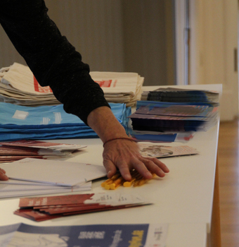 Das Bild ist Teil der Serie „Veranstaltungen“. Es zeigt einen Tisch mit Infomaterial bzw. Informationsmaterial. Es gelten die Nutzungsbedingungen der Mediothek und Pixiothek.
