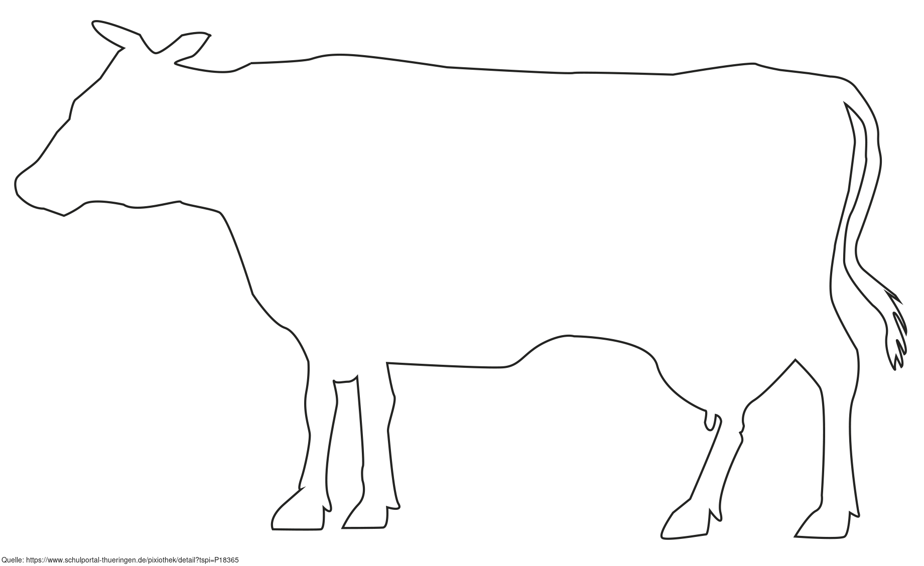 Das Bild zeigt eine Umrisszeichnung einer Kuh. Es stammt aus dem Projekt "Didactica Bavaria Bohemia" - Materialpakete daraus siehe "Verwandte Medien (Auswahl)". Das Bild ist unter CC0 lizenziert und kann somit frei verwendet werden.